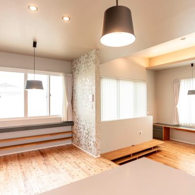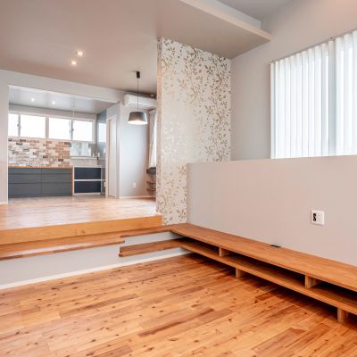 スキップフロアの2階リビング