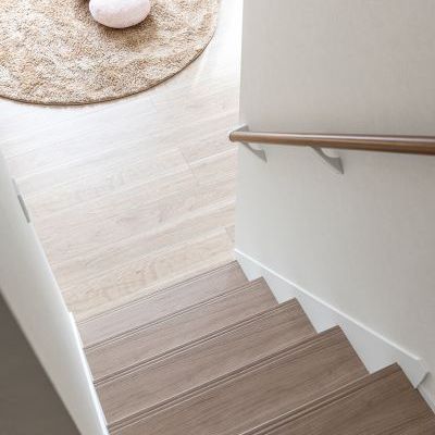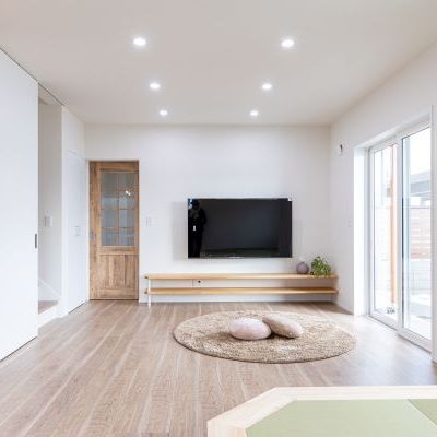 全体的にホワイトと木目で統一したシンプルナチュラルを基調に、キッチン前面、トイレの壁、洗面台など、部分的に質感のあるグレーを取り入れました。