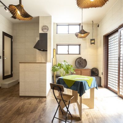 貸しスペースの中は古い物が生かされており、プライベート空間は明るく快適に仕上がっていてそれぞれの雰囲気が明確であるところ。